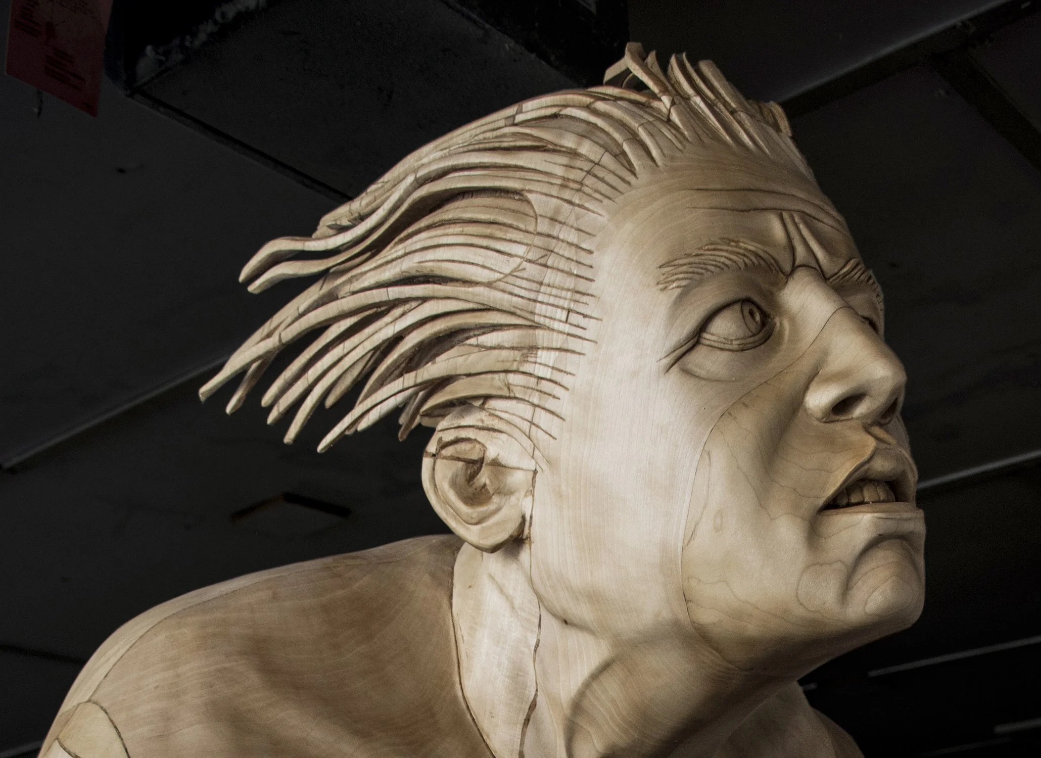 Laminated Basswood wood sculpture; approximately 120% larger than life size.