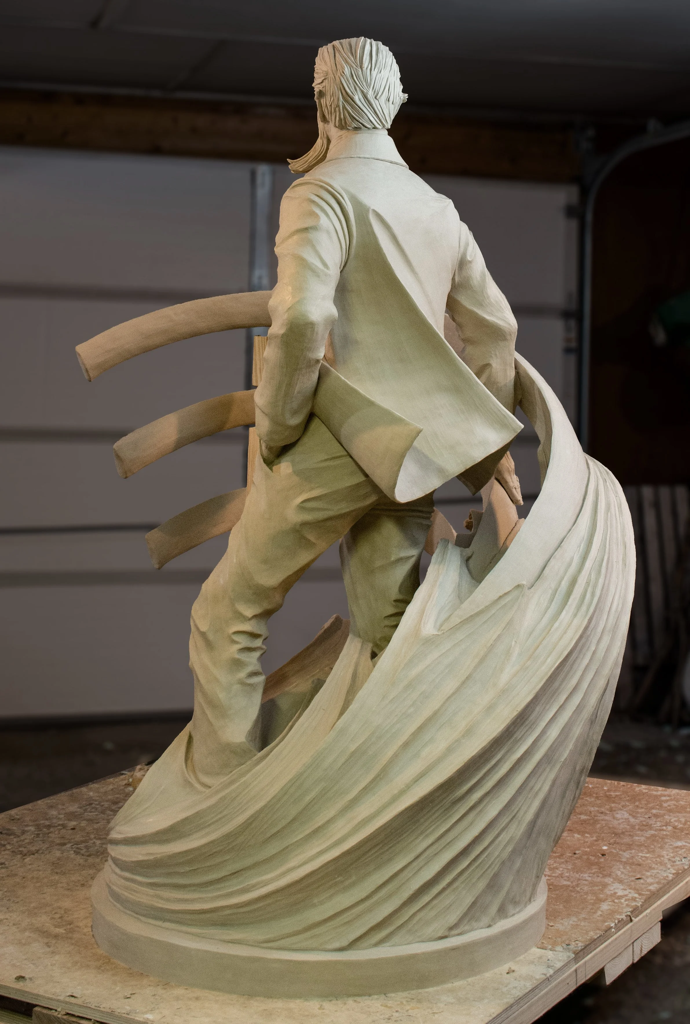 This is the 5.5’ foot clay model, which has been scanned, and will be enlarged and cast as a 7.5’ figure and placed on a granite ring, which will be inscribed with the hymn from Chapter 9 of Moby Dick (The ribs and terrors in the whale, arched over me a dismal gloom… ). It will be installed next to the iconic Seaman’s Bethel in New Bedford, MA.